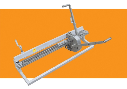 3. 将皮带塞入带扣内,皮带必须塞到齿条的带扣导向件,旋转机架两端的摇柄,压紧皮带即可。将机头推向机架的任何一端开始钉扣,两端订好,再订中间。